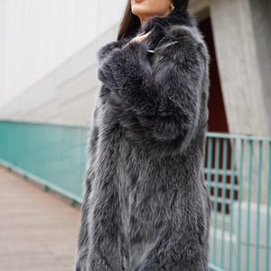 Luxurious Midnight Blue Fox Fur Collarless Jacket Medium Size Only