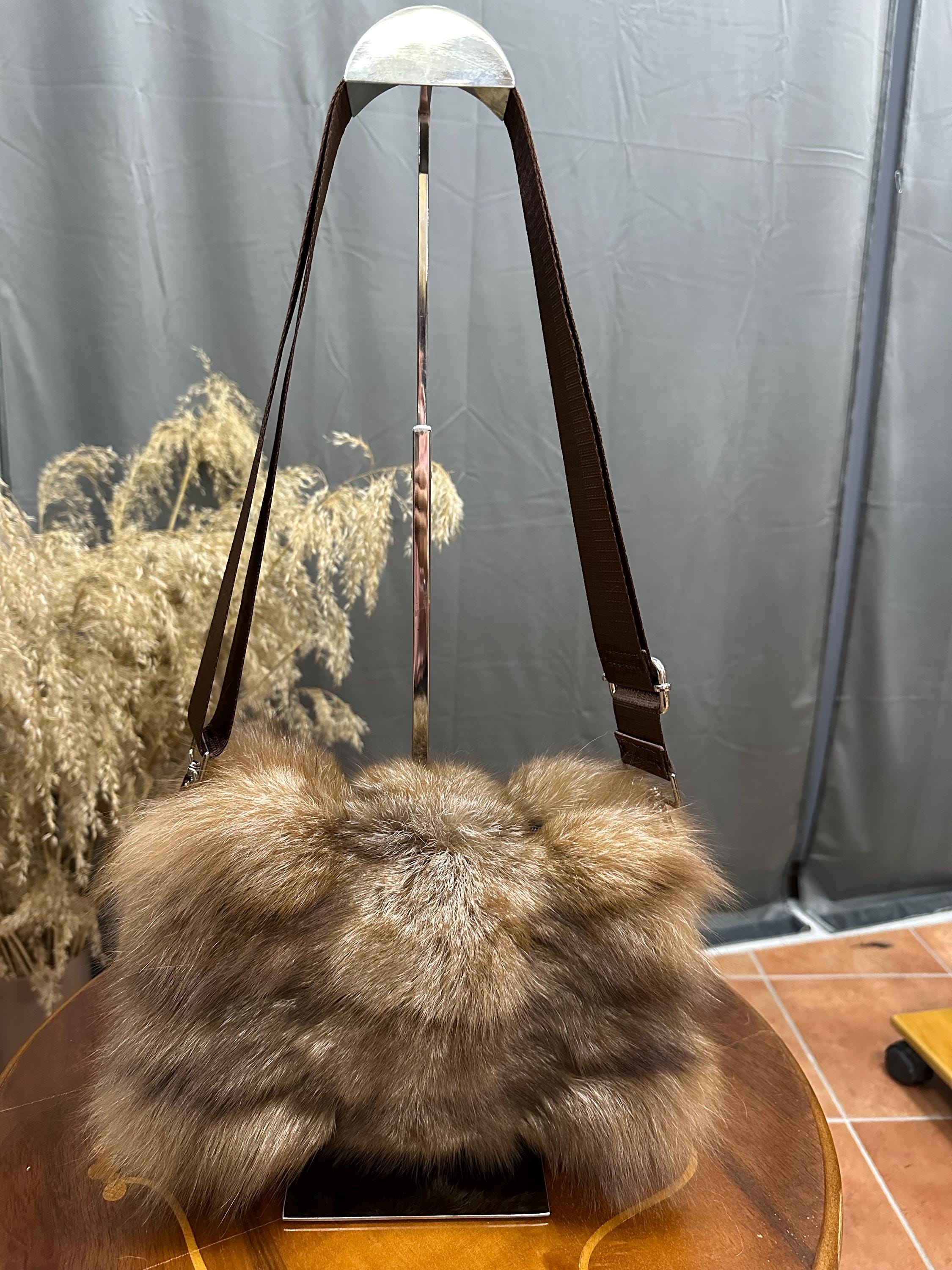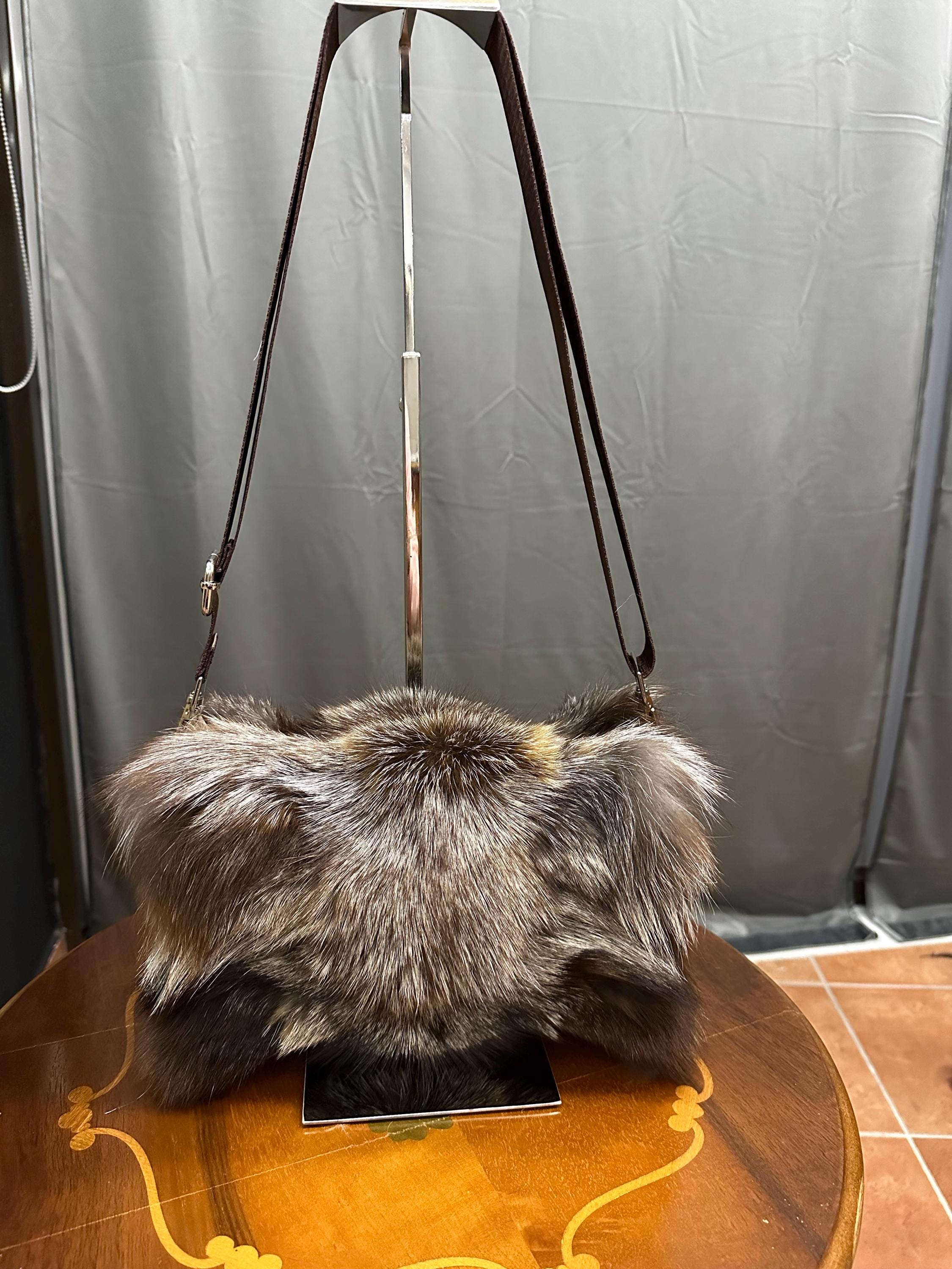 Luxurious Materials: Made from high-quality silver fox fur, this crossbody bag is soft to the touch and visually striking, making it a must-have addition to your collection.