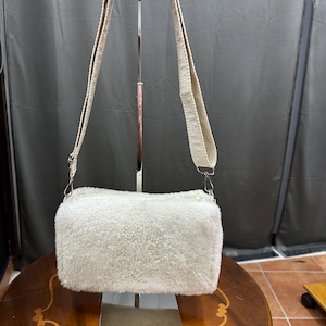 Luxurious adjustable-Strap Crossbody Bag in Crystal fox fur with Removable Hardware