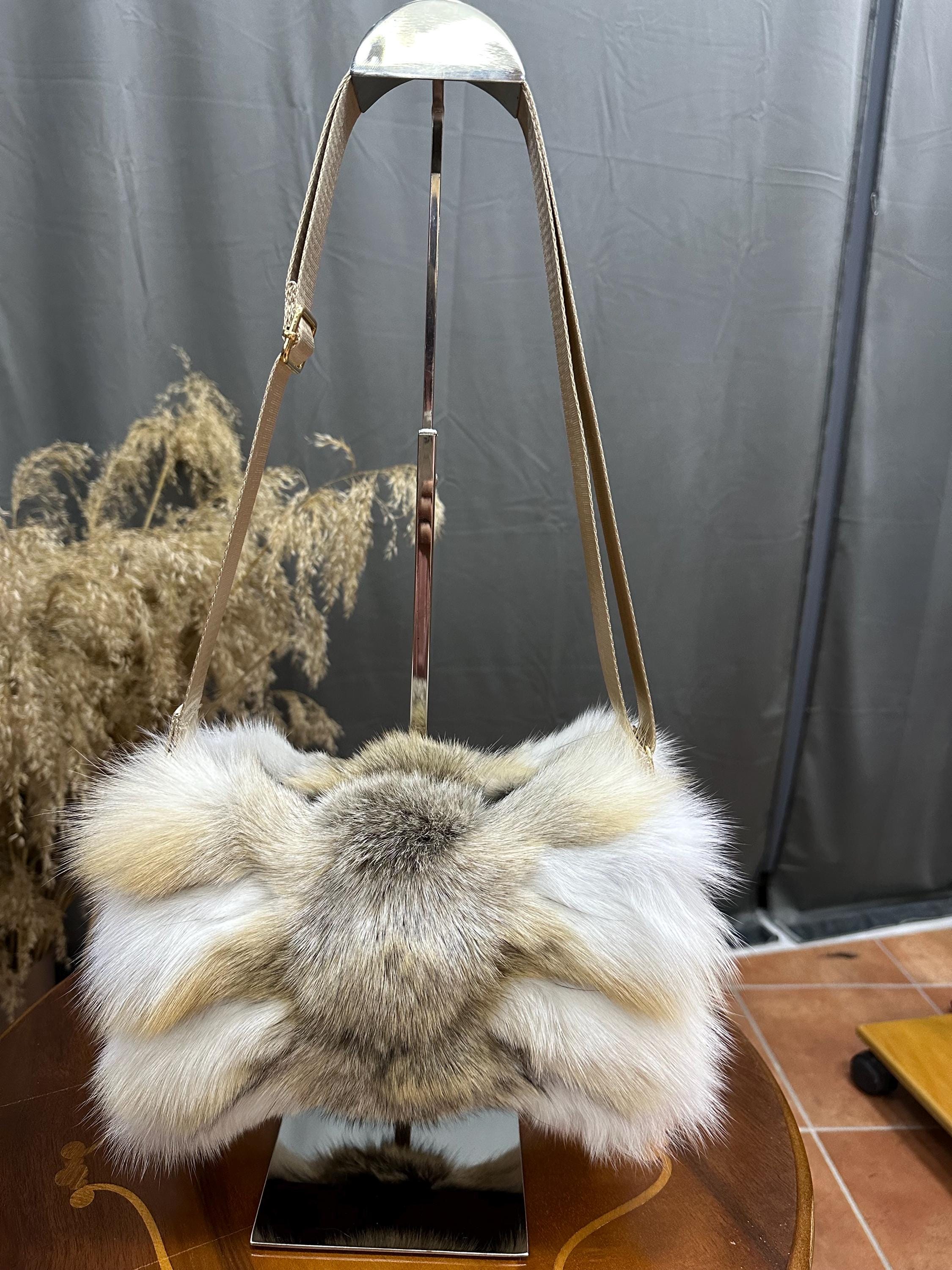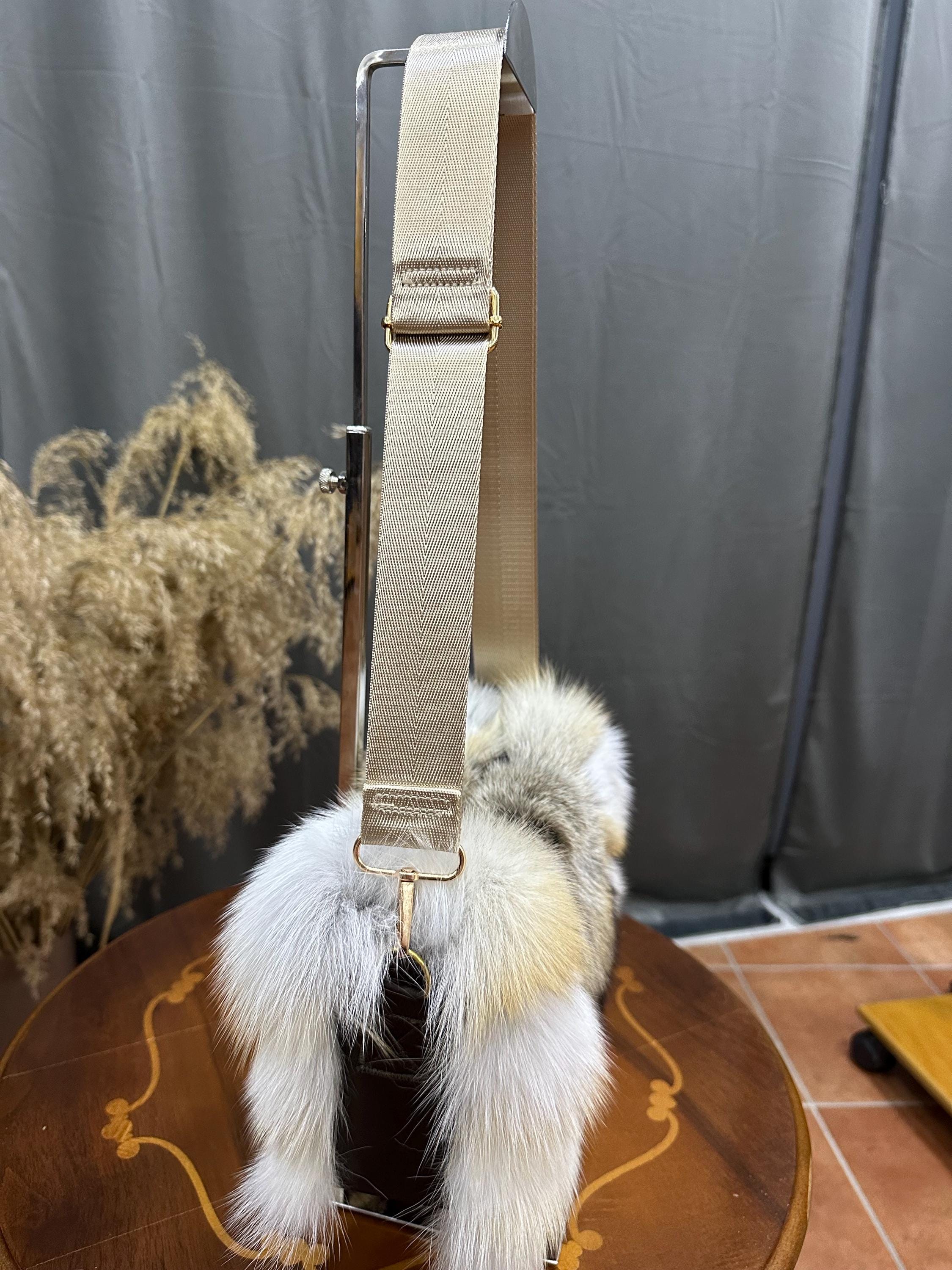 Luxurious adjustable-Strap Crossbody Bag in Platinum / Golden/Platinum Light fox fur with Removable Hardware