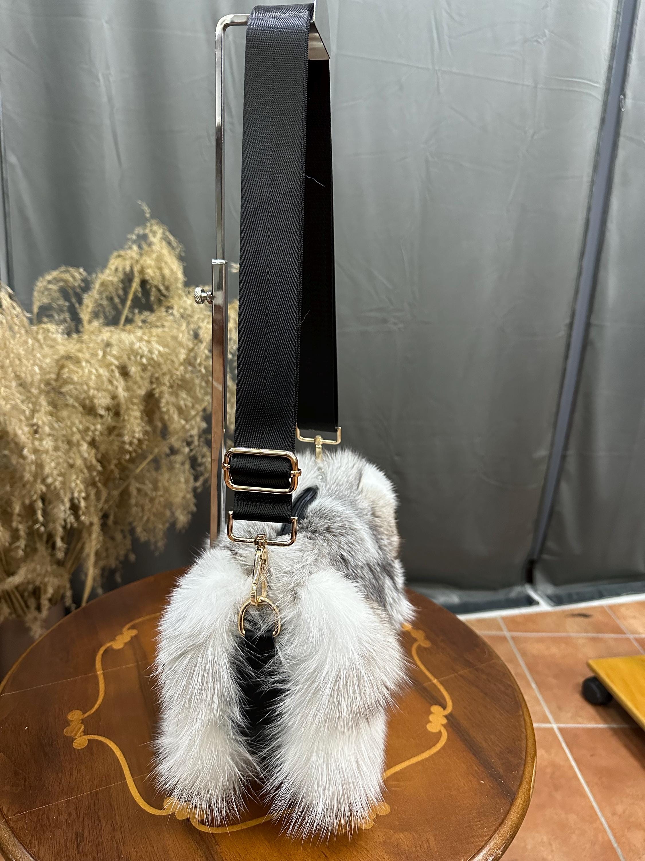 Luxurious Materials: Made from high-quality silver fox fur, this crossbody bag is soft to the touch and visually striking, making it a must-have addition to your collection.