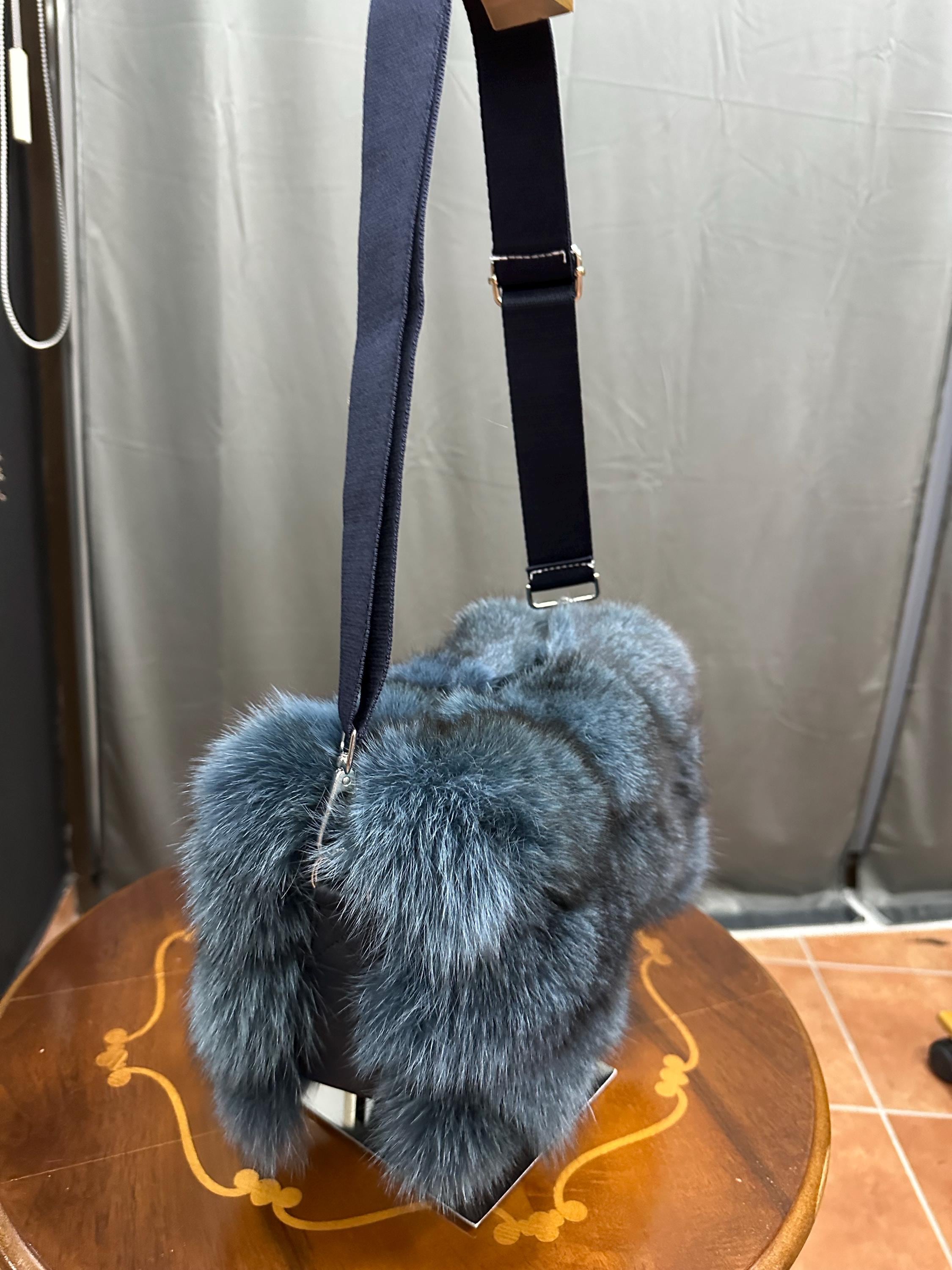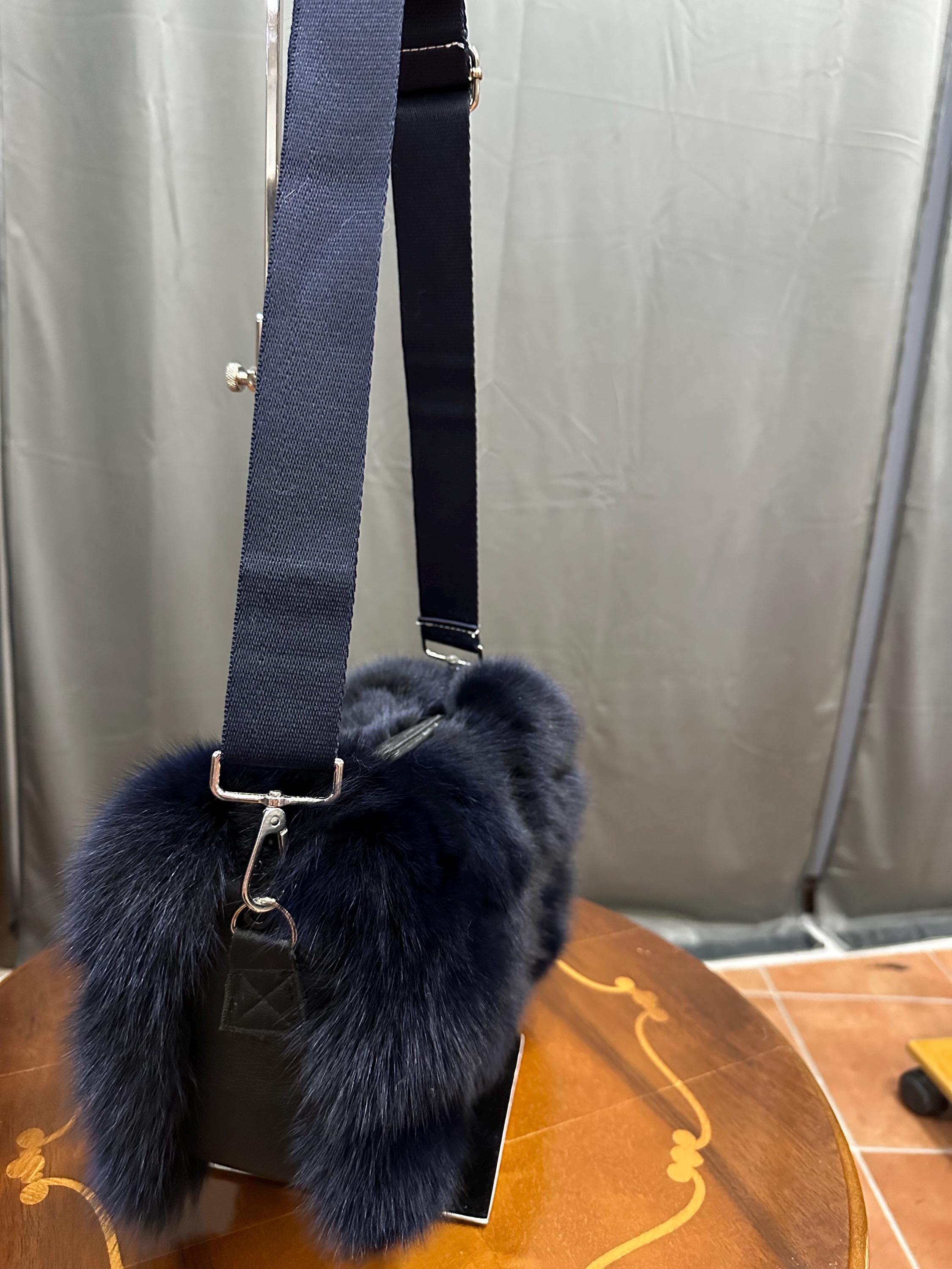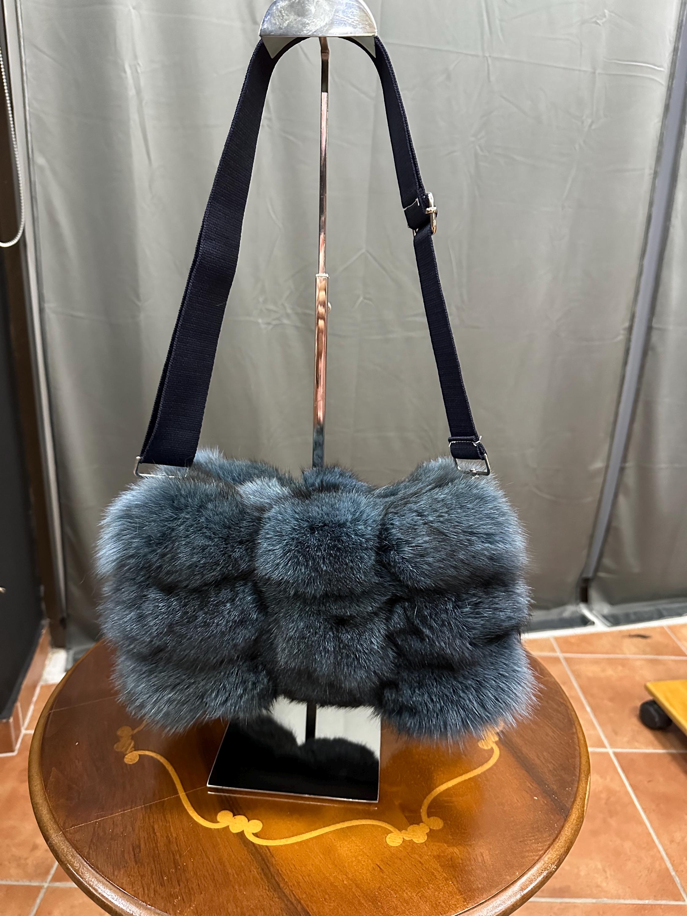 Blue Black/Emerald Blue /Purple/Black Fox Fur Crossbody Bag, Adjustable Leather Strap