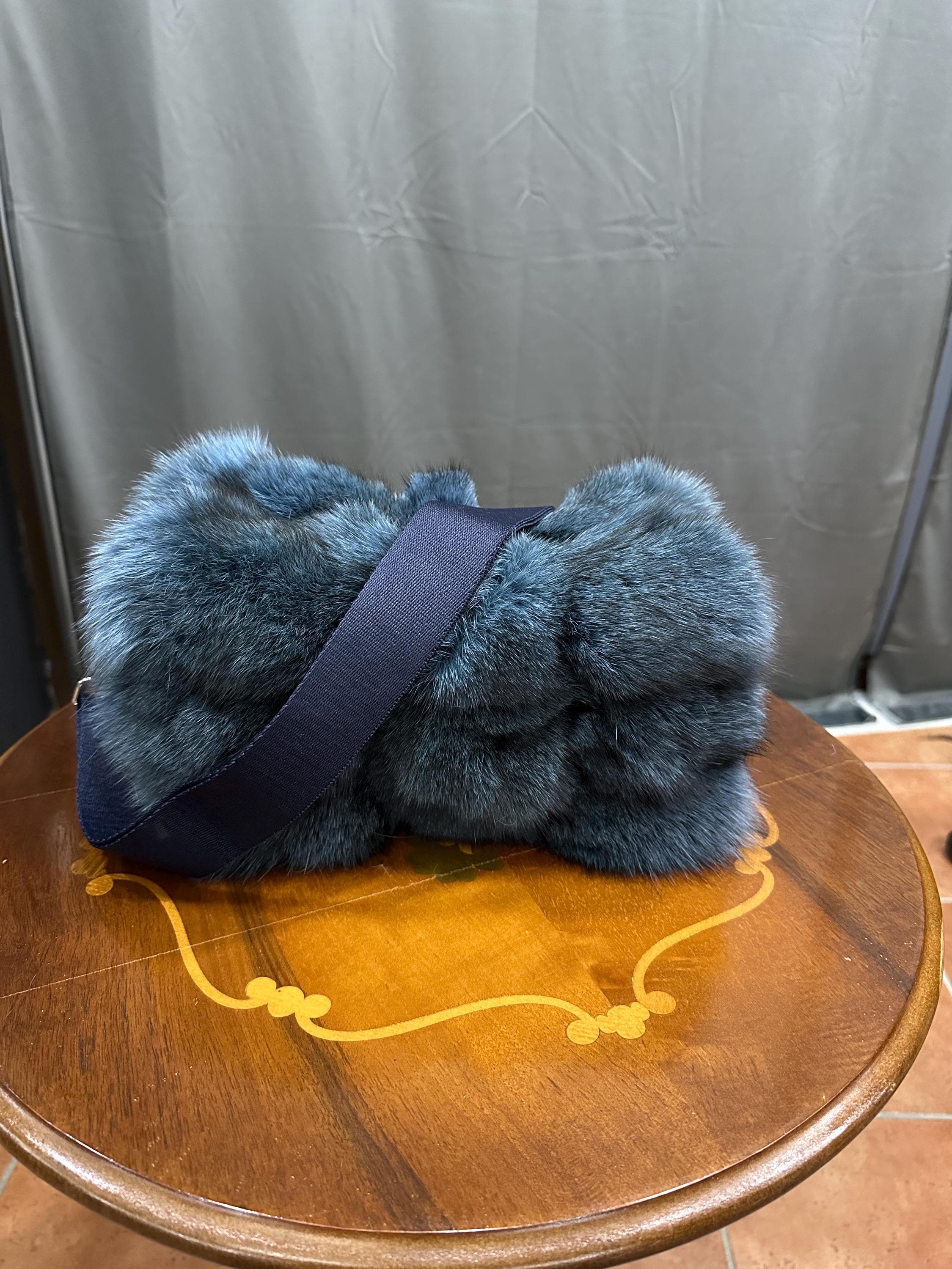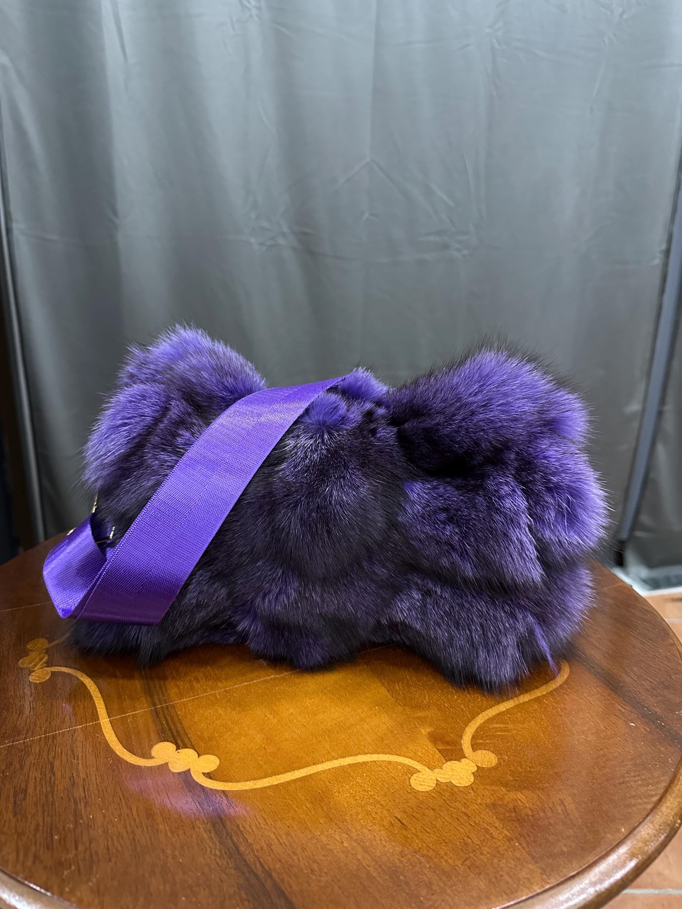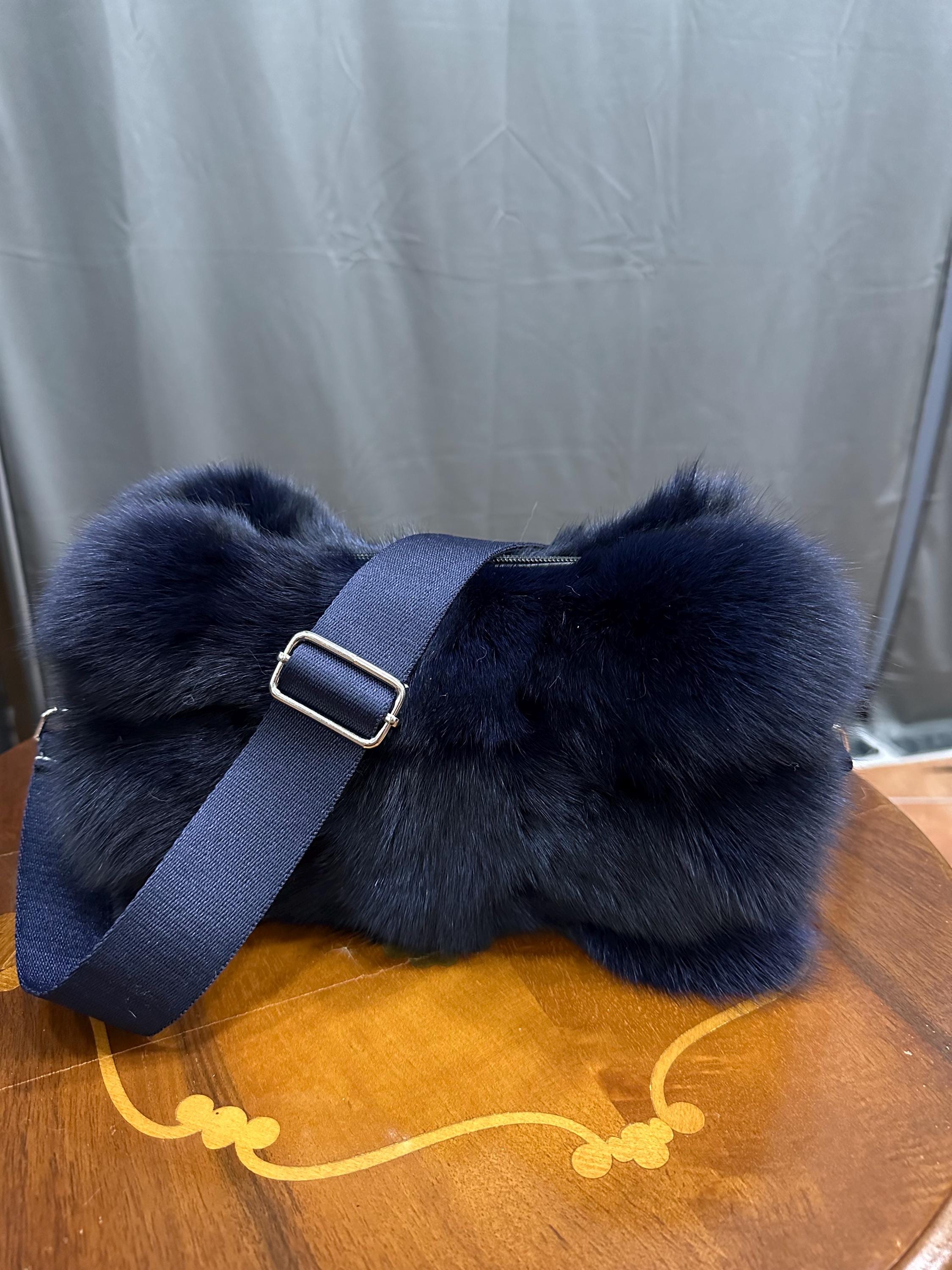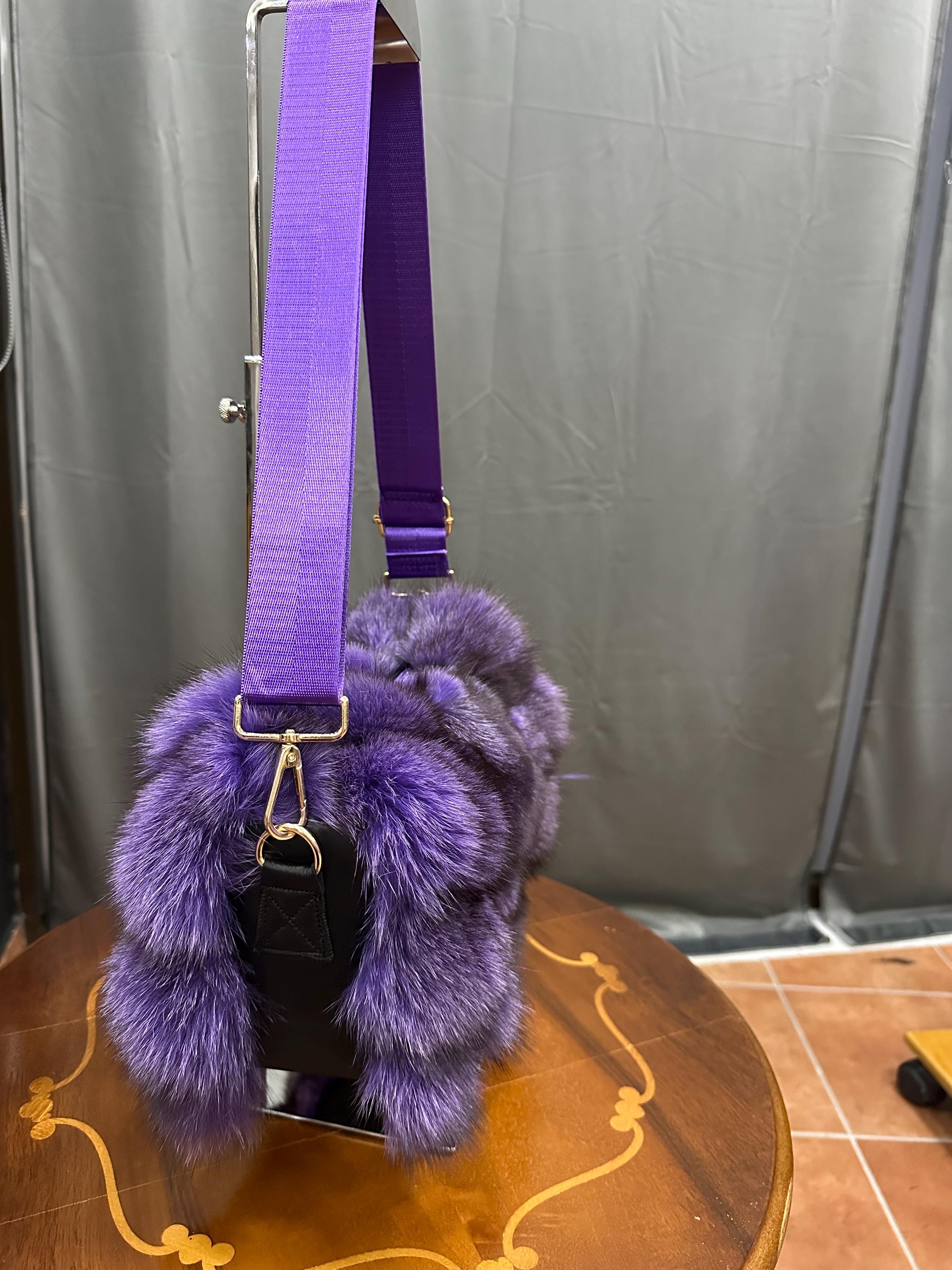 Blue Black/Emerald Blue /Purple/Black Fox Fur Crossbody Bag, Adjustable Leather Strap